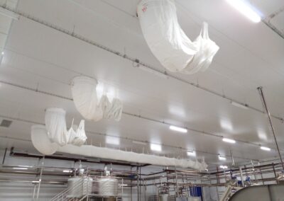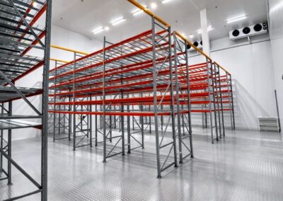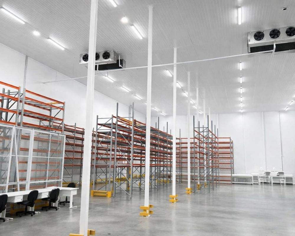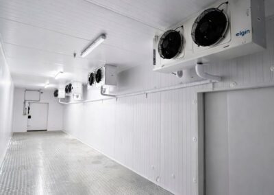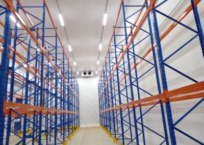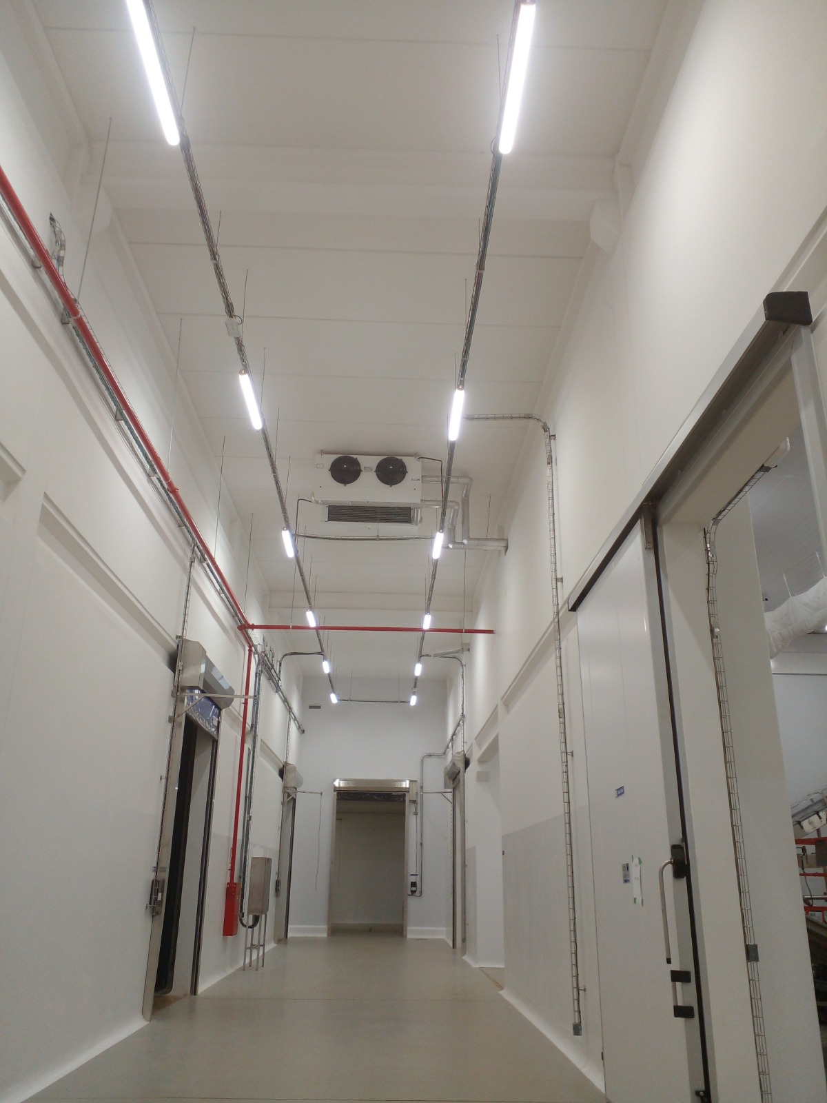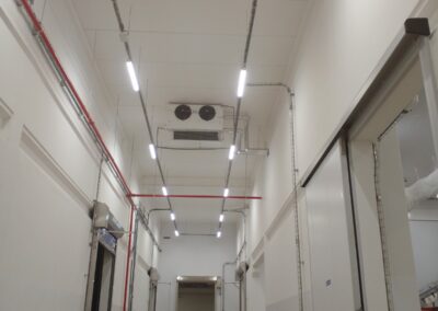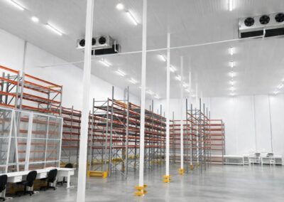 Elaboração de projeto e execução de instalação de Climatização e refrigeração de aproximadamente 10.000 m² de painéis isotérmicos, aproximadamente 40 unidades condensadoras (semi-herméticos) e forçadores de ar. Portas seccionais e corrediças. O sistema possibilita climatizações entre 2 a 8ºC e-25ºC para câmaras de congelados.