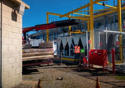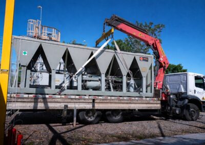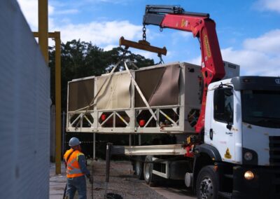Retrofit de CAG: – Remoção de chiller existente, instalação de novo chiller 180 TRs com readequação de cavalete hidráulico, readequação de tubulação hidráulica, içamento dos equipamentos e start-up com testes, ajustes e balanceamento.